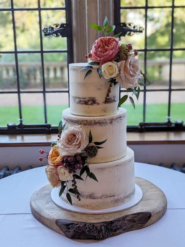 “My wedding cake looked and tasted absolutely beautiful. From start to finish Harriet has been absolutely amazing,nothing has been too much trouble. So many compliments on the look and taste of our cake. I highly recommend Not Just Cake . You delivered our cake in the pouring rain. The delivery and set up of our cake went completely unnoticed, not only by us the bride and groom but none of our guests saw you either! You were like a cake fairy! Thank you again so much you truly are an amazing cake maker. The sugar flowers.. everyone thought they were real flowers! 5 stars just aren't enough for the service we received from you."